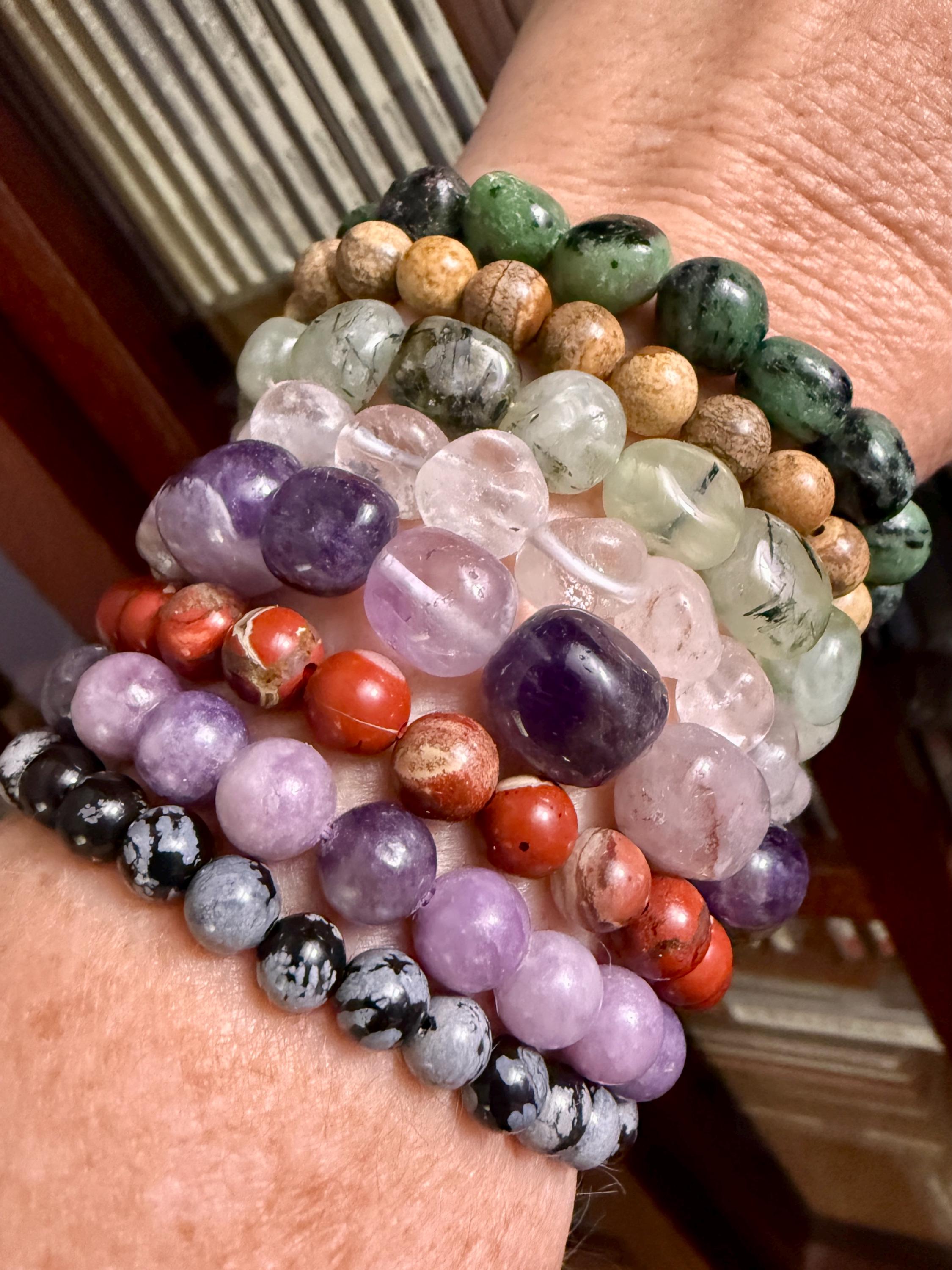 This lovely Red Jasper gemstone bracelet, made with 100% natural crystals, is available in 4mm, 6mm & 8mm round bead options. Choose your desired bead size from the drop down menu. This piece will fit all standard wrist sizes 5 1/2 - 7 inches and is made with a durable heavy-duty elastic cord.