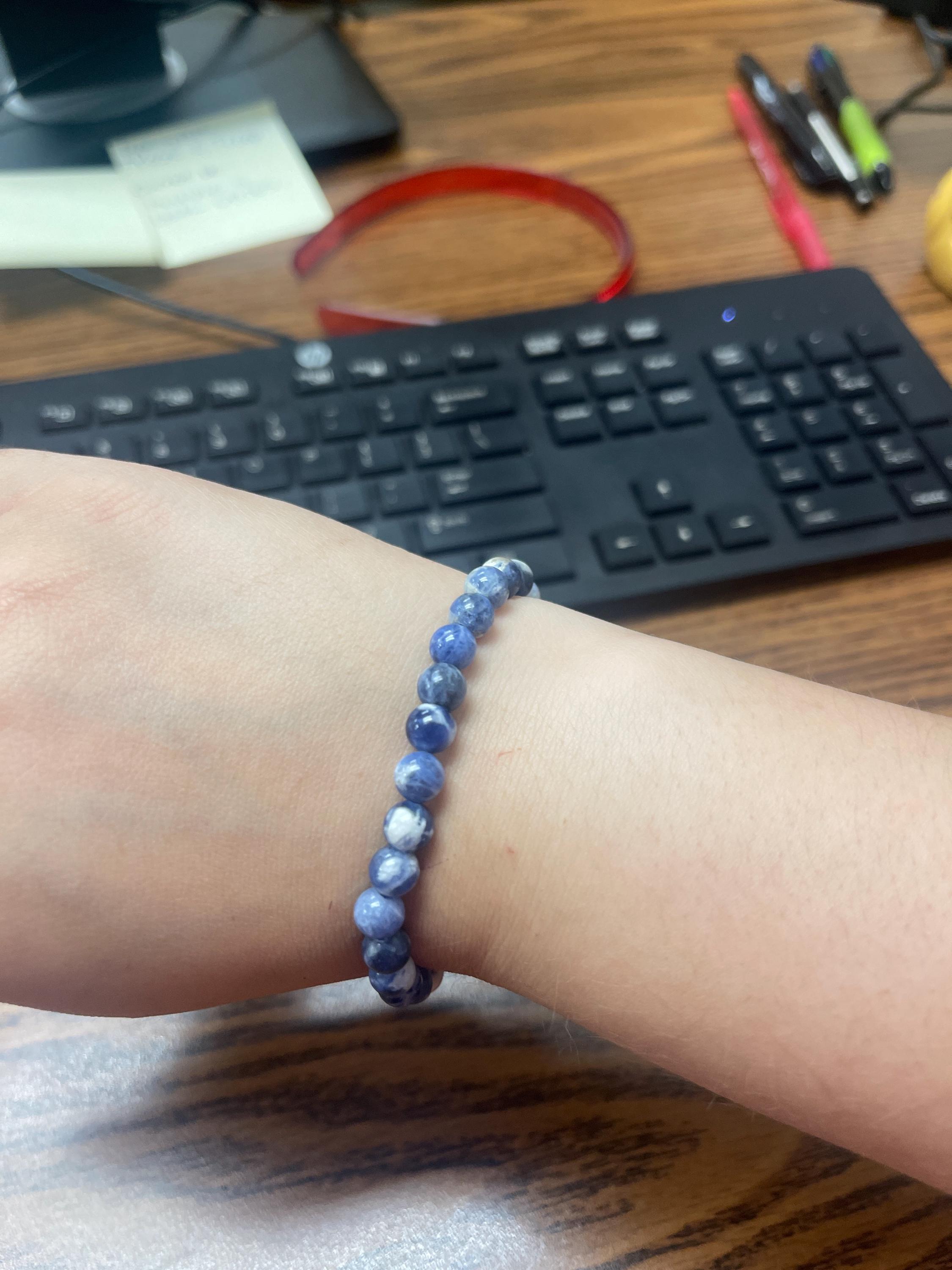 This lovely Sodalite gemstone bracelet, made with 100% natural crystals, is available in 4mm, 6mm & 8mm round bead options. Choose your desired bead size from the drop down menu. This piece will fit all standard wrist sizes 5 1/2 - 7 inches and is made with a durable heavy-duty elastic cord.