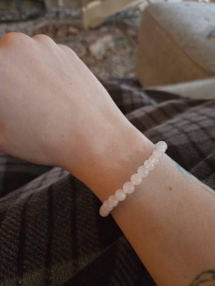 This lovely Rose Quartz gemstone bracelet, made with 100% natural crystals, is available in 4mm, 6mm & 8mm round bead options. Choose your desired bead size from the drop down menu. This piece will fit all standard wrist sizes 5 1/2 - 7 inches and is made with a durable heavy-duty elastic cord.