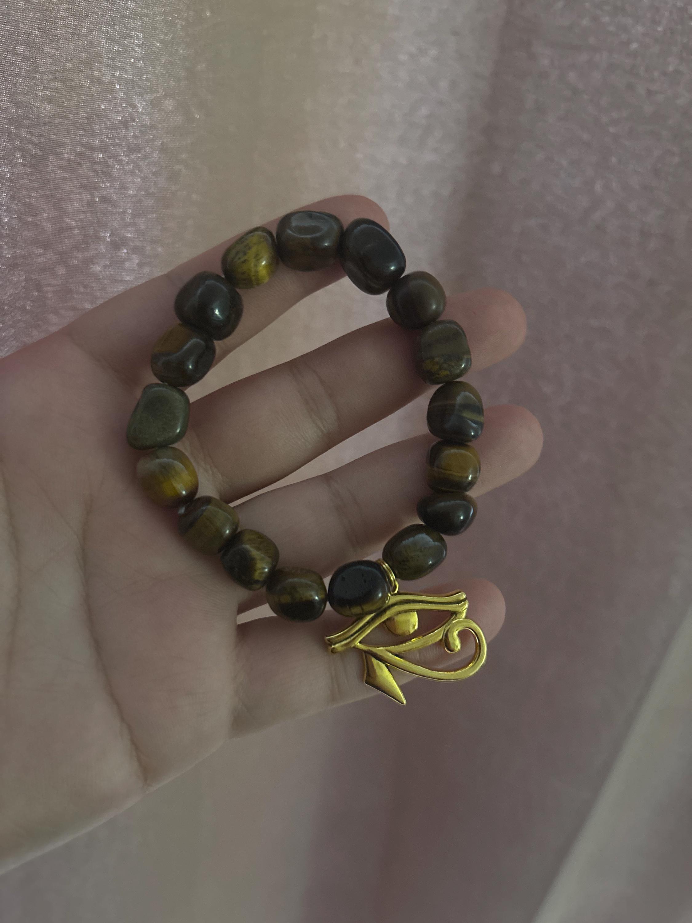 These Egyptian inspired bracelets are perfect for both men & women. Made of chunky tumbled crystals, select either NATURAL OBSIDIAN or NATURAL TIGER EYE.