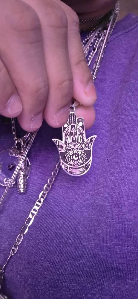 This unisex necklace honors the sacred symbol of the Hamsa Hand (aka Hand of Fatima), a symbol of protection against harm. Said to bring goodness, abundance, fertility, luck and good health.